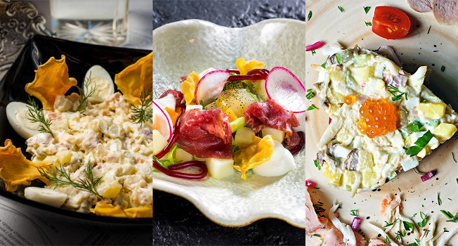 Заменивая колбасу на сыровяленую оленину и используя соус айоли вместо майонеза, шеф-повар Адриан Кетглас создал необычный и вкусный рецепт оливье, который непременно произведет впечатление.