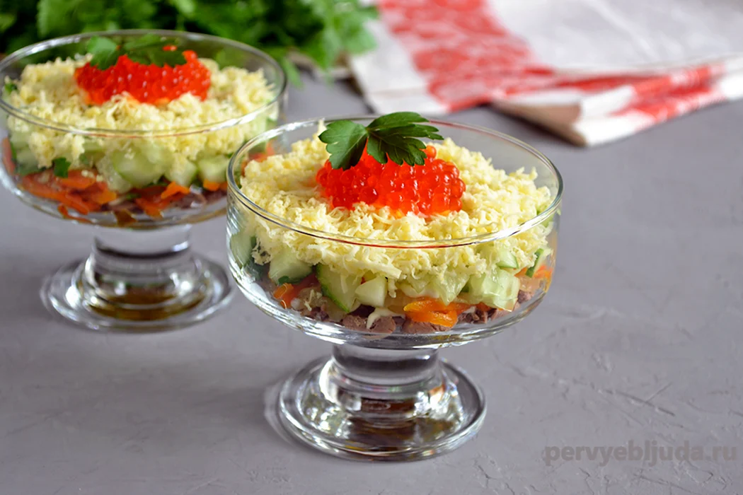 Праздничное застолье — это не только изысканные блюда, но и привлекательная подача, создающая уникальную атмосферу. Салаты в бокалах — это эффектный способ порадовать своих гостей и придать мероприятию нотку шика. Благодаря такой форме подачи каждый получит свою порцию, а стол останется аккуратным.