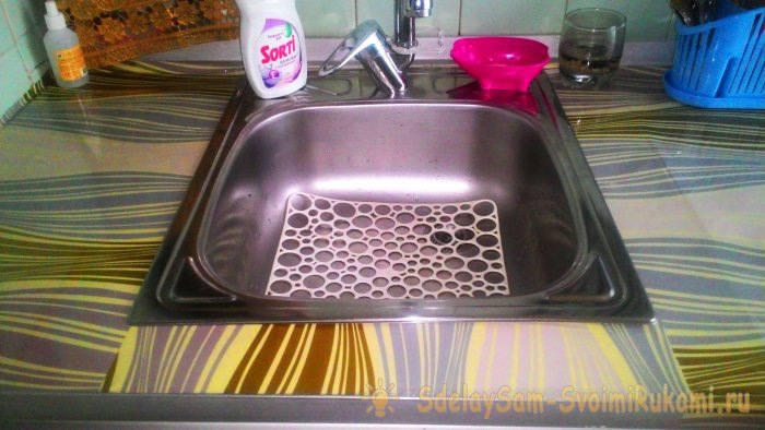 Если возникли пузырьки или складки, не паникуйте: пленку можно снять и приклеить вновь. Тем не менее, рекомендуется предварительно отрезать пленку с запасом, чтобы аккуратно закрыть и пространство вокруг раковины.