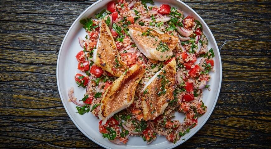 На прилавке магазина можно встретить такой аппетитный морской окунь: компактный и свежий. Но как его приготовить? Предлагаем delicious рецепт, который поможет создать великолепное блюдо в сочетании с киноа и свежими овощами.