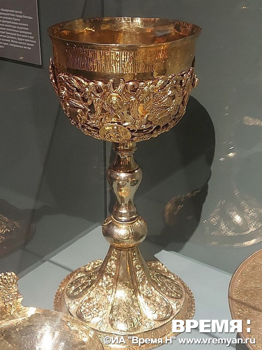 Научный сотрудник НГХМ Наталья Свирина отметила, что нижегородские потиры выделяются своей массивностью, а элементы их декора перекликаются с архитектурными формами барочных храмов. В центре экспозиции разместилось впечатляющее напрестольное Евангелие, датированное 1706 годом и украшенное позолотой — яркий пример мастерства русского барокко.