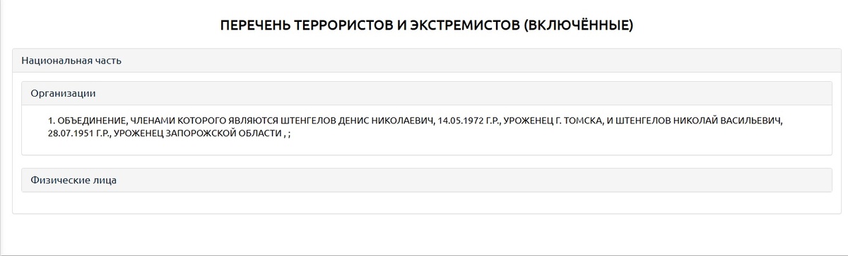 Росфинмониторинг внес в свой список террористов и экстремистов объединение, в которое входят Денис Штенгелов и его отец Николай Штенгелов, ранее владевшие группой компаний «КДВ». Об этом стало известно 13 марта, когда информация появилась на официальном сайте ведомства.