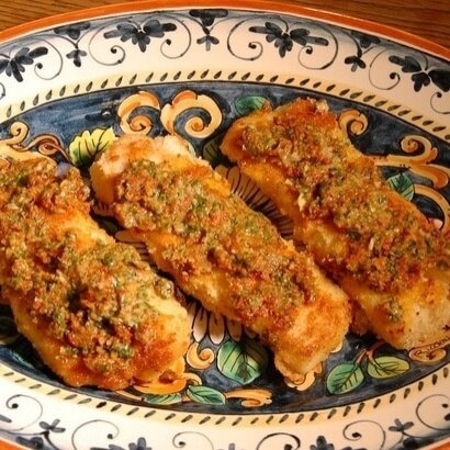 Далее, разбейте яйцо в миске и тщательно перемешайте с солью и перцем. Нагрейте сковороду с оливковым маслом. Обваляйте филе трески сначала в яйце, затем в панировочных сухарях. Обжарьте с одной стороны до золотистой корочки, затем переверните. На уже обжаренную сторону выложите тонким слоем приготовленный соус, накройте сковороду крышкой и доведите до полной готовности.