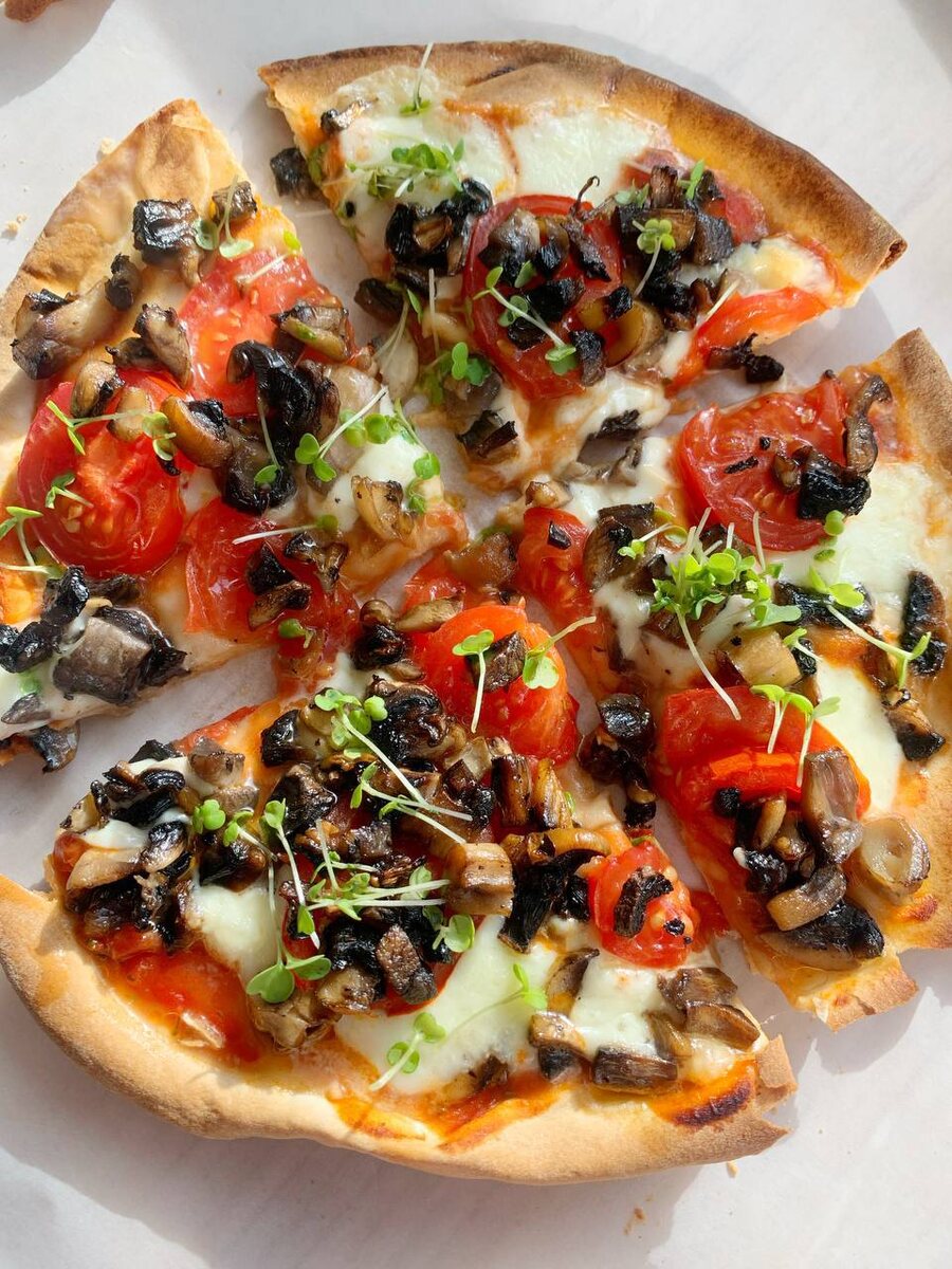 - Классическая пицца: Томатный соус, грибы, помидоры и сыр — классика, которая никогда не подводит. Добавьте немного орегано для аромата.