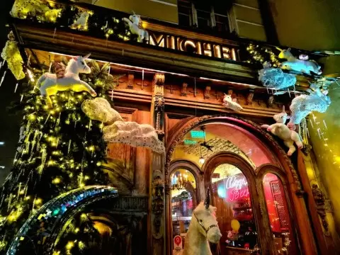 Ресторан, работающий с начала 2000-х, стильно оформлен: деревянный фасад, красные окна и приспособленный уличный пространство создают атмосферу уюта. Два этажа, где можно выбрать между небольшими столиками и более просторной зоной, обеспечивают комфорт для всех посетителей. В этом году «Мишель» удивил гостей, украсив помещение не только традиционными новогодними атрибутами, но и неожиданными элементами, такими как единороги.