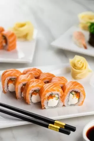 - Текстура: Сочетание нежного сыра, маслянистого лосося и упругого риса делает его уникальным на вкус.