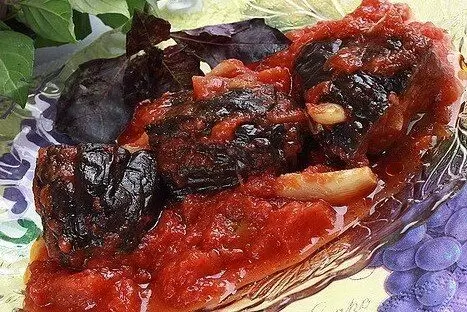 Эта простая, но необычайно вкусная холодная закуска моментально привлечет внимание к вашему столу. Баклажаны в этом блюде не подвергаются обжариванию, что позволяет сохранить их натуральный вкус, дополненный ароматом чеснока и легкой кисло-сладостью помидоров. Важно, чтобы все используемые овощи были свежими и качественными — только так можно добиться идеального результата. Использование тепличных овощей не подойдет.
