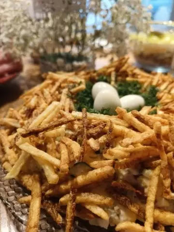- Новая текстура: Хрустящие картофельные соломки заменяют привычный вареный картофель, добавляя интереса в каждую порцию.