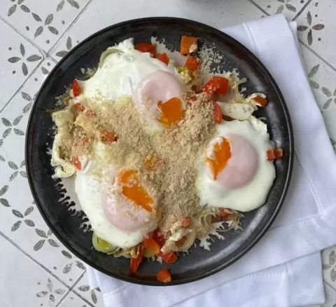 - посыпать яичницей или омлетом перед подачей;