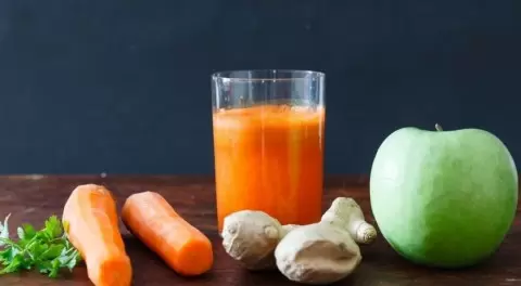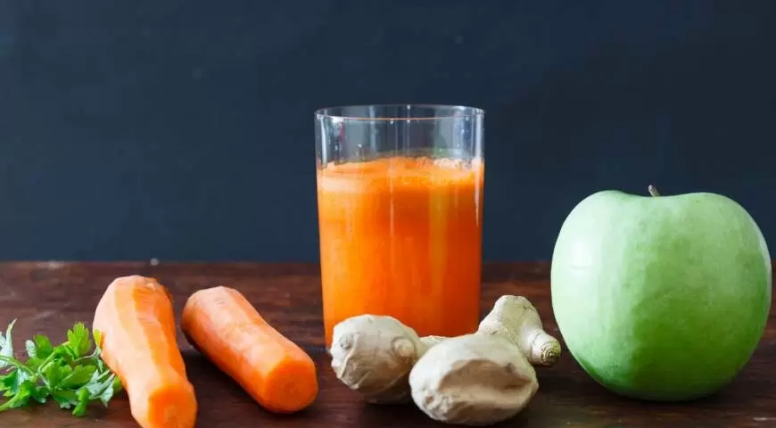 Яблочно-морковный напиток с добавлением имбиря можно смело считать настоящим детокс-эликсиром. Этот витаминный микс эффективно очищает организмы, обогащая его бета-каротином, что способствует омоложению и улучшает общее самочувствие. Кроме того, он пополняет запасы витамина С и фолиевой кислоты, необходимых для поддержания здоровья.