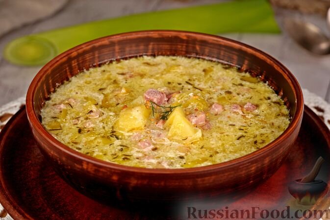 - Картофельный суп с ветчиной и горчицей: этот сытный суп создается на основе картофеля и нежной ветчины, дополненный легким акцентом зернистой горчицы. К сливкам, которые добавляют особую мягкость, лишь остается присоединить ароматный лук-порей и нежный корень сельдерея.