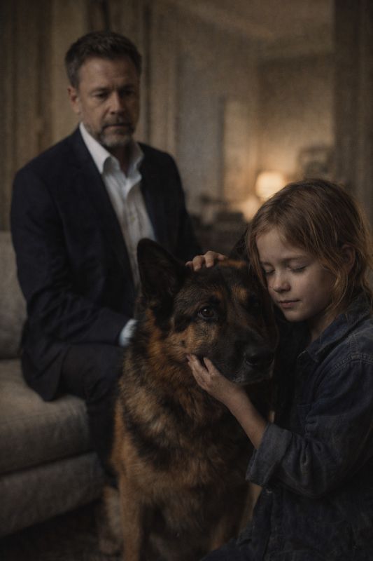Когда пёс вышел из своей комнаты, атмосфера накалилась. Алина сжалась, но тут же удивила всех уверенным поступком — она протянула руку и коснулась собачьей шерсти. На изумление мужчины, пёс лег у её ног, не как защитник, а как друг.