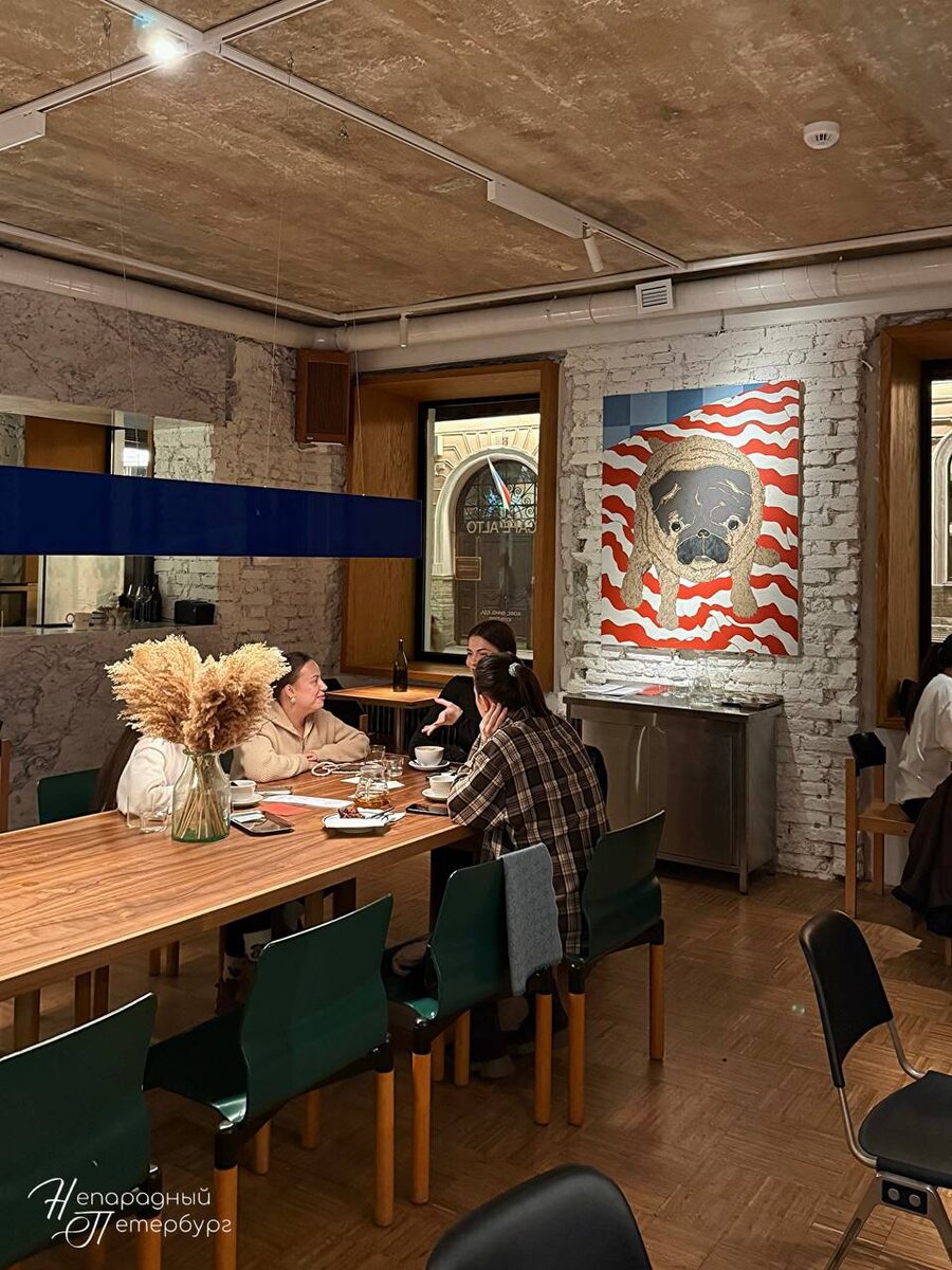 В дневное время здесь можно зайти и заказать ароматный кофе с аппетитной выпечкой, а также лёгкие завтраки и изысканные десерты. С наступлением вечера меню преобразуется: на столах появляются сытные маффины, разнообразные рыбные блюда, ризотто с грибами, а также восхитительные супы и свежие салаты.