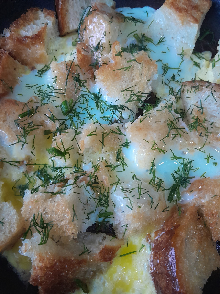 Представьте себе: аппетитные хрустящие кубики хлеба, золотистые и пропитанные сливочным маслом, а также нежнейшие яйца, которые создают невероятное сочетание текстур и вкусов в каждом кусочке. Это не просто простая яичница — это настоящий гастрономический праздник, который можно приготовить всего за несколько минут!