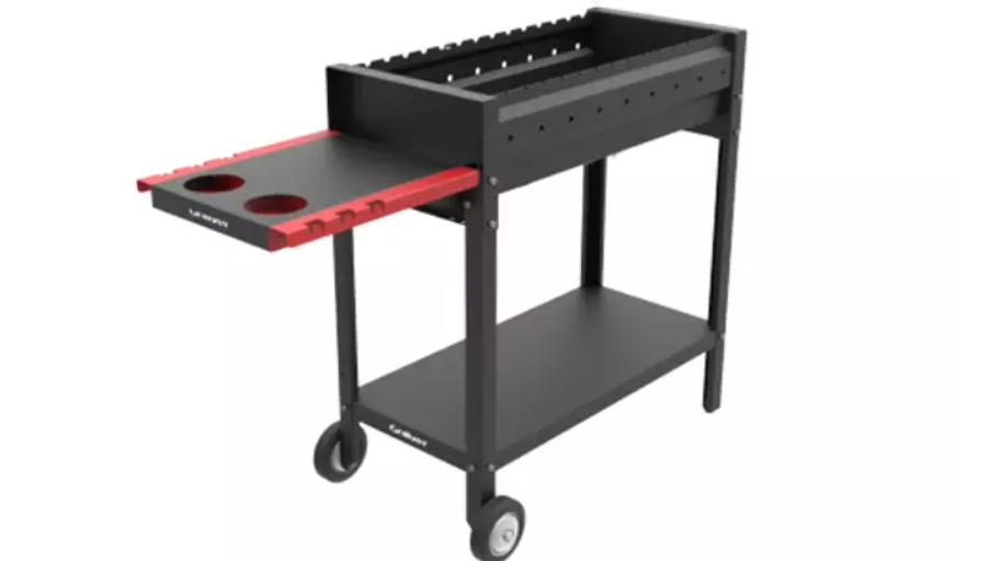 Воздух к углям поступает снизу, а специальные отверстия обеспечивают удаление несгоревших углей и угольной пыли, улучшая процесс горения. Легко трансформируемый в гриль, он укомплектован откидным столиком с держателями для стаканов и крючками для кухонной утвари.