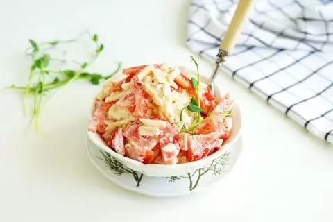 Салат с помидорами, сыром и чесноком поможет создать уютную атмосферу на вашем ужине, даже если времени на готовку совсем нет. Поделитесь своими простыми рецептами, которые вы используете в повседневной жизни! Такие легкие и вкусные блюда — это не только спасение в будние дни, но и возможность добавить яркие краски в рутинное меню.