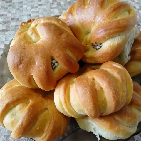 - Начинка: 100 г мака, 50 мл молока, 2 ст. ложки сахара, 200 г творога, 1 ч. ложка ванильного сахара и 1 ст. ложка сливочного масла.