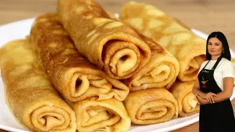 Этот рецепт подходит как для сладких, так и для солёных начинок. Например, можно завернуть в блин нарезанную моцареллу, добавив к ней жареные грибы. Блины, приготовленные по этому рецепту, всегда получаются нежными и очень вкусными — их невозможно не любить!