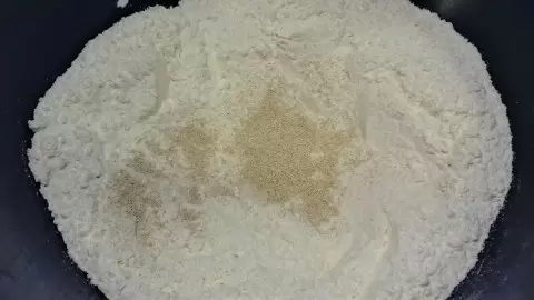Начало приготовления: в глубокой миске смешать муку, соль и дрожжи. Затем сделать углубление в центре смеси, добавить оливковое масло и теплую воду. Сначала перемешать ингредиенты деревянной ложкой, потом вымесить тесто руками, уделяя внимание, чтобы оно стало эластичным.