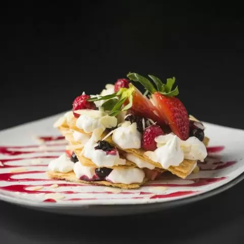 Слои хрустящего теста, нежный крем с ярким ароматом лайма и сочные ягоды — летний десерт мильфей радует глаз и вкус. Этот французский шедевр стал недосягаемым символом кулинарного искусства, и сегодня он будет особенно освежающим благодаря цитрусовым ноткам и летним ягодам.
