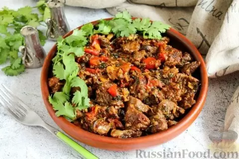Начнем с чашушули — восхитительного рагу по-грузински, где нежная говядина обжаривается с луком и томится с помидорами и сладким перцем. Ароматные специи делают это блюдо поистине волшебным. Можно готовить как на сковороде, так и в казане.