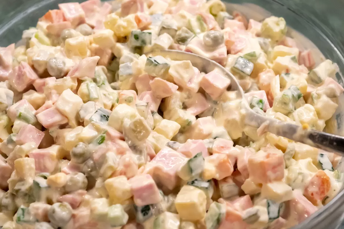 Чтобы снизить нагрузку на пищеварение, привычные порции можно скорректировать: уменьшить количество картофеля и заменить его на более свежие овощи, добавить хрустящий огурец и зелень, увеличить долю нежирных белков и отказаться от жирной колбасной подготовки. Так салат становится менее тяжелым и немного легче переносится в праздничные дни.