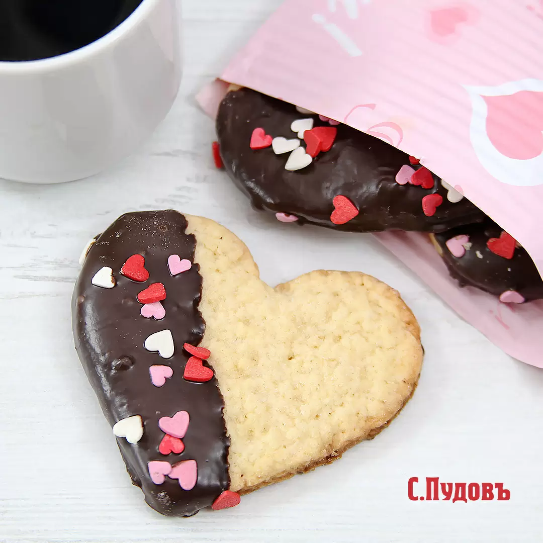 Это печенье будет не только хрустящим и нежным, но и пленит своим сливочным ароматом. Красивое сердце и украшения в виде маленьких сердечек создадут идеальную атмосферу для этого романтичного дня.